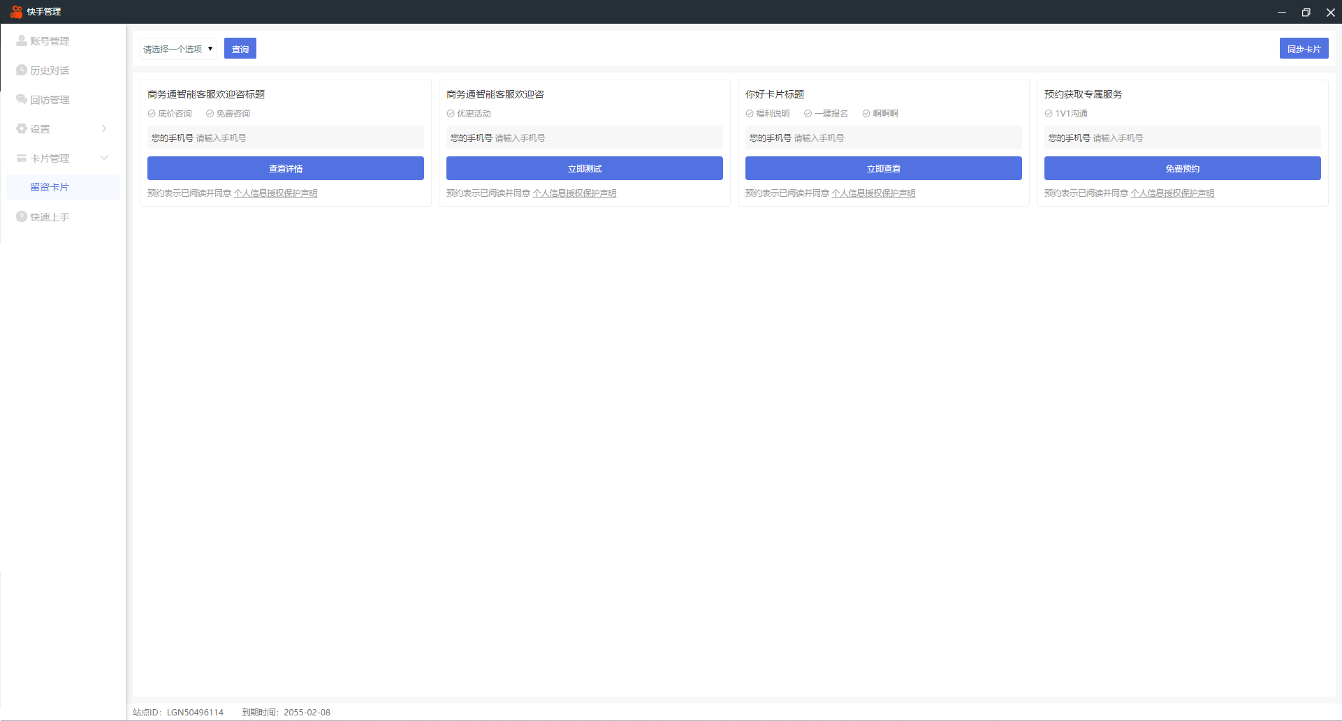 进入留资卡片,可以查看和同步快聊后台创建的留资卡。